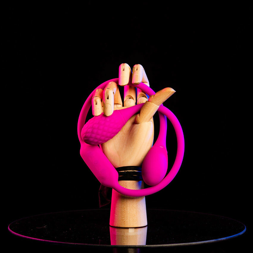 Ela tem duas pontas vibratórias, uma delas texturizada, que podem ser controladas individualmente com os botões do meio. Uma ponta pode ir no clitóris e outra no mamilo, uma pode ir no ânus e a outra na vagina, uma no ânus e uma no clitóris, uma numa vulva e outra em outra… as possibilidades são infinitas com os 12 modos de vibração!
